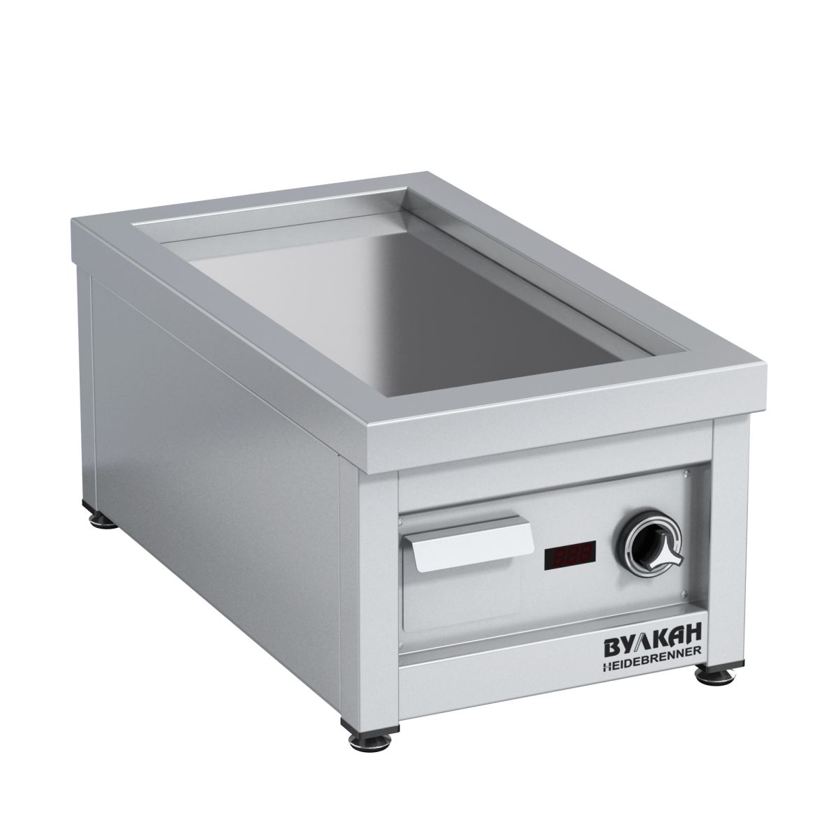 400х700х325мм, Настольная гладкая жарочная поверхность из стали общей толщиной 35мм, На поверхности- сливное отверстие для сбора жира, съёмный жиросборник. Благодаря специальному покрытию поверхность отлично противостоит коррозии и имеет хорошие антипригарные свойства. Рабочее поле: 330х580 мм.В зависимости от модели жарочная поверхность может иметь 1 или 2 зоны нагрева с независимым управлением. Все поверхности представлены в настольном и напольном варианте.
