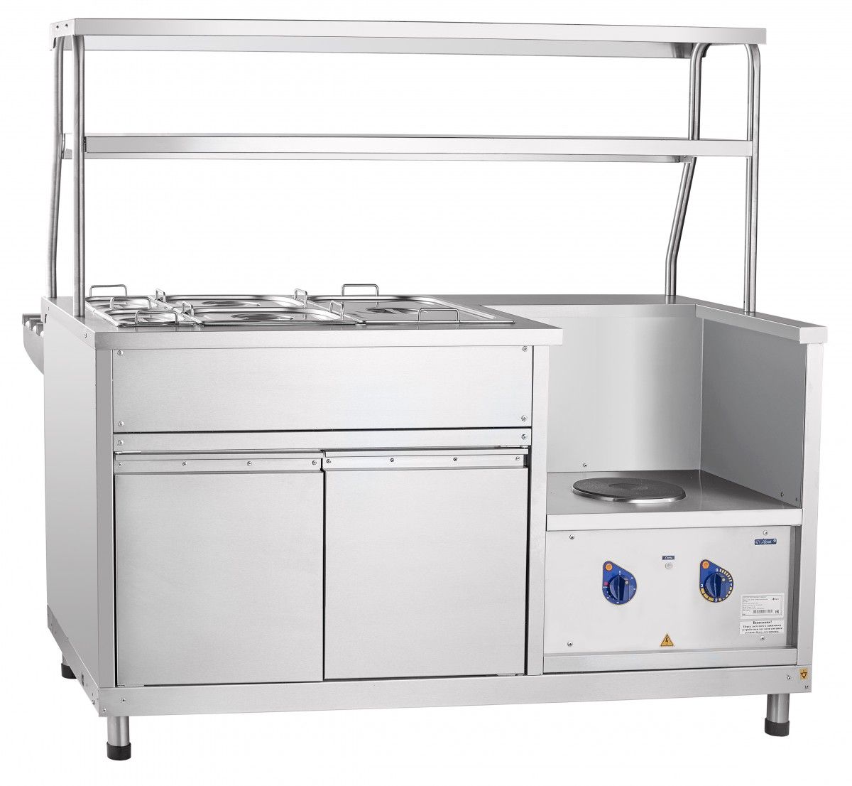 1500x705(1030)x1484мм, Мармит 1-х и 2-х блюд ЭМК-70КМУ универс. паровой (две полки, подсвет, одна конф., с г/ёмкостями, 1500 мм)