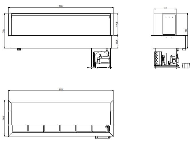 Код A1DOGEKSRF20; 2120х730х1140мм, 0,47кВт, 220В, +2…+7С, 165кг, 6GN-1/1, встраиваемый, с встр.агр. R404A