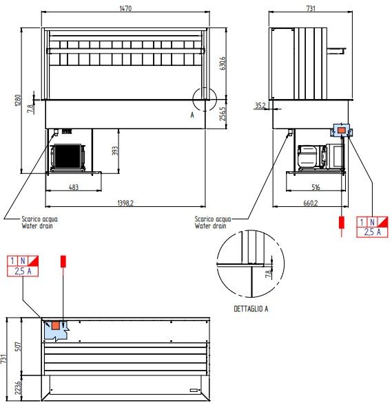 Код A1DOGEKWRF14P/С; 1470х730х1290мм, 0,412кВт, 220В, +2…+7С, 156кг, 4GN-1/1, встраиваемый, с встр.агр. R290