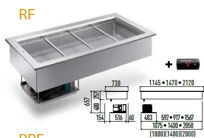 Код 1BASEKRF10P; 1145х730х550мм, 0,34кВт, 220В, +2...+7С, 54 кг, вместимость 3GN-1/1, встраиваемый, с встр.агр. R404A