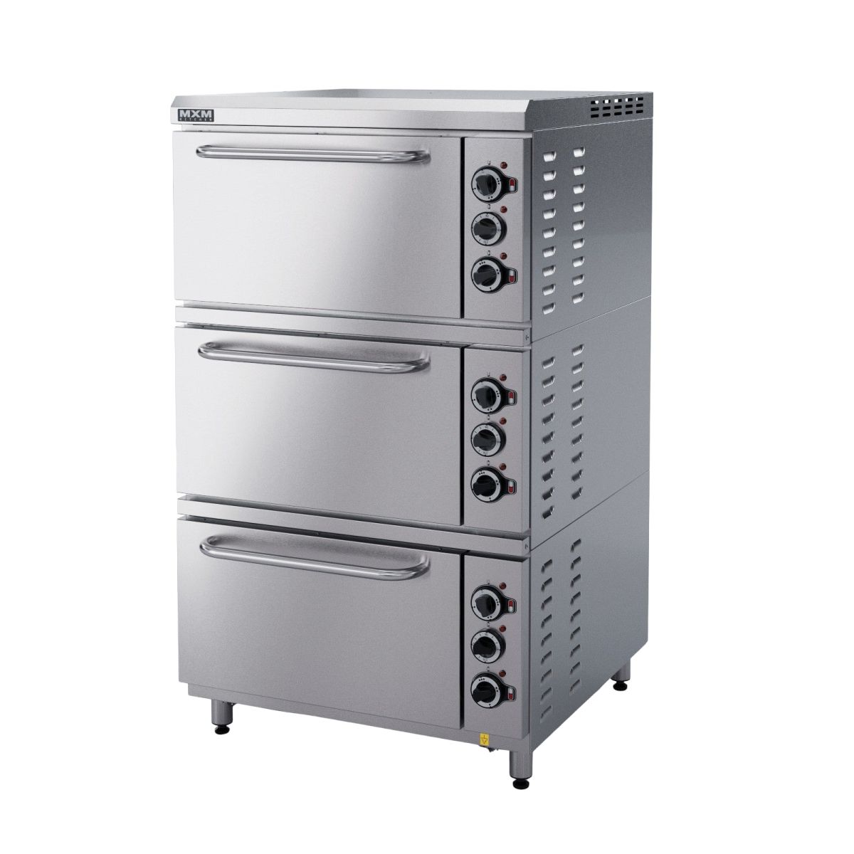 840х900х1500мм, Шкаф жарочный электрический ШЖЭ93, лицевая нерж., модульная, три стандартных духовки из угл. стали под противень 470*530*30 мм.,нерж ТЭН-ы,раздельная регулировка верхних и нижних ТЭН-ов (+20…+270 С)14.4кВт,230/400В