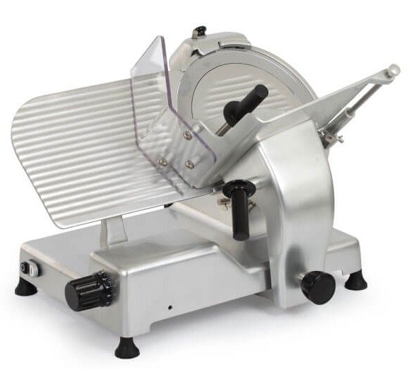 810х407х583 мм., 220В, 0,4 кВт, Диаметр ножа 370 мм, рез 320 x 245 мм, ход каретки 370 мм. Cлайсер гравитационный для нарезки мяса, сыра, колбасных изделий и других продуктов питания. Толщина нарезки 0-22 мм. Слайсер полуавтоматический для профессионального использования на предприятиях общественного питания. Нож из хромированной стали, корпус из анодированного алюминия. 1 скорость. Заточное устройство. Система EASY CLEAN. Исполнение PROF CEP+BLC