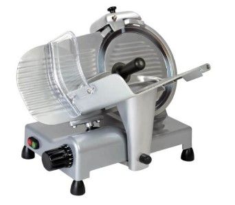 Габариты 605 x 480 x H 420 мм. Диаметр ножа 300 мм, рез 245x195 мм. Полуавтоматический слайсер для нарезки мяса, сыра, колбасных изделий и других продуктов питания. Толщина нарезки 0-14?16 мм. Слайсер для профессионального использования на предприятиях общественного питания. Нож из хромированной стали, корпус из лакированного алюминия с пластиковыми деталями. Фиксированное заточное устройство. Версия PROF CEV