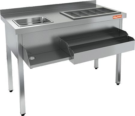 1000х870х850мм, НКС-10/6БПК коктейльная станция с бортом, теплоизолир. ванна, мойка, полка, двойной карман, 1000х870х850мм