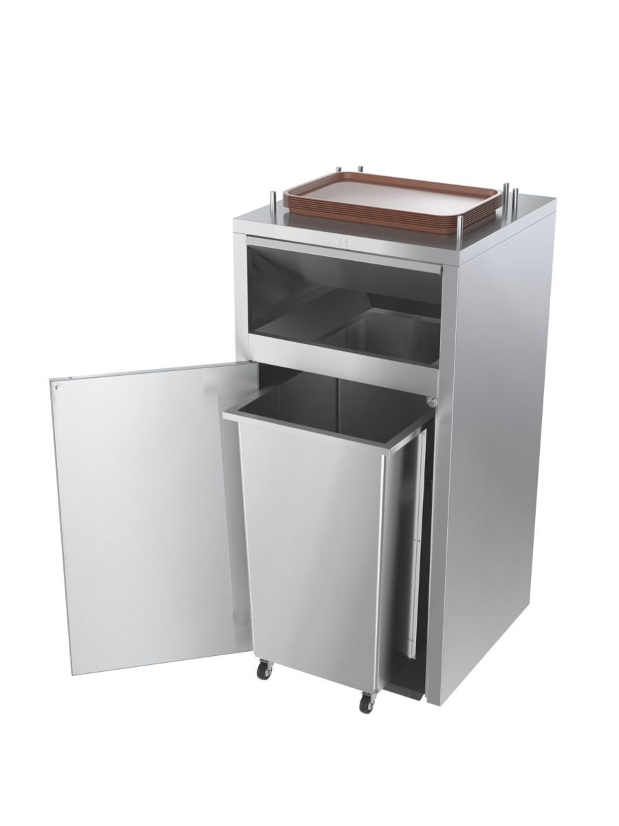 600х600х1250мм, объем мусороприемника - 124 л, для пакетов 240 литров, ширина мешка - 110мм, маятниковая крышка мусоросборника