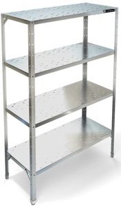 1500х300х1830,каркас разборный, стойки из оцинкованного уголка 40х40 из, толщиной 1,5 мм, 4 перфорированные полки из стали AISI 430, толщиной 0,8 мм, , 0,09V, м3 Нагрузка на одну полку- 70 кг- равнораспределенная. Дополнительные укосины для жесткости конструкции