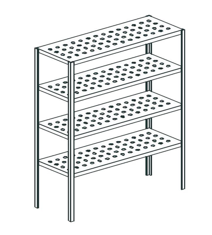 2000х500х2000 мм, 4 полки с перфорацией, нерж сталь AISI 304