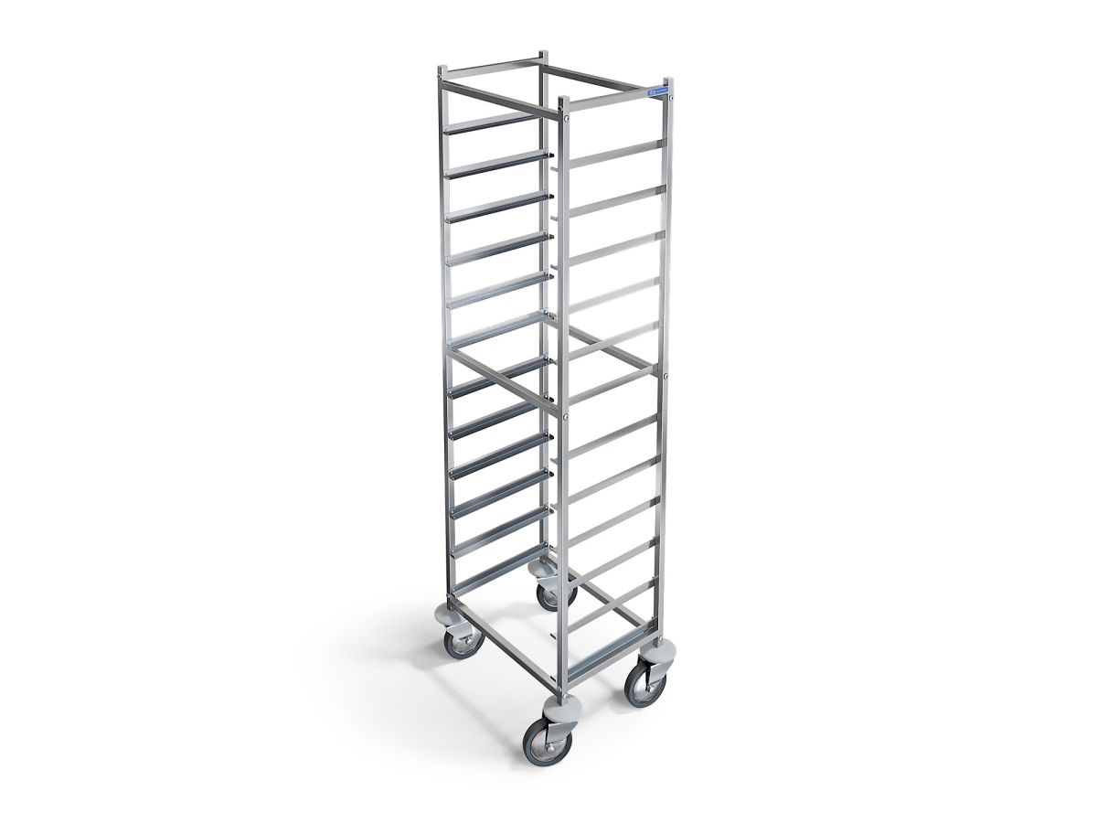 450х600х1760мм.Тележка шпилька разборная, универсальная для подносов, максимальный габаритный размер подносов 380х590мм,под подносы без ручек, 12 уровней, расстояние между направляющими 120 мм, сталь AISI 430
