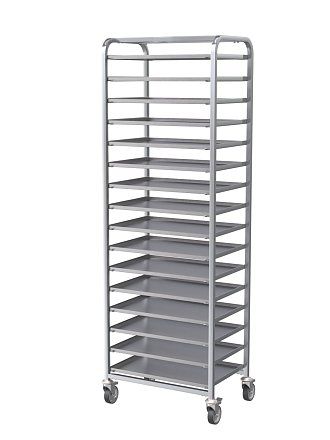 670х450х2000мм, для технологического хранения и транспортировки пекарских подносов 600х400мм, количество уровней 16, расстояние между уровнями 113, максимальная распределенная нагрузка общая 160кг, максимальная распределенная нагрузка на одну полку 15кг. Профиль стоек труба 25х25мм, материал стоек нерж. сталь 1,5мм. Колесная опора без тормозов 2шт., колесная опора с тормозом 2шт. Диаметр поворотных колес 100мм. Вес 23,5кг. Шпилька изготовлена из нержавеющей стали AISI 304.