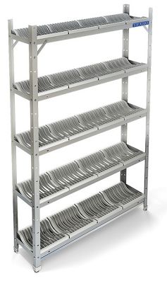 1500х300х1830мм, Стеллаж для сушки посуды c кассетами из пластмассы на 325 тарелок, разборная конструкция на болтовом соединении, каркас из уголка 40х40 нержавеющей стали марки AISI 430 толщиной 2мм, полки и поддон из нержавеющей стали марки AISI 304 толщиной 0,8мм. Регулируемые опоры. Стеллаж поставляется в разобранном виде.