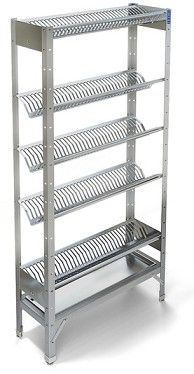 900х300х1830мм, Стеллаж для сушки посуды c кассетами из нержавеющей стали марки AISI 430 на 175 тарелок, разборная конструкция на болтовом соединении, каркас из угока 40х40 из нержавеющей стали марки AISI 430 толщиной 2мм, полки из нержавеющей стали марки AISI 430 толщиной 0,8мм. Поддон из нержавеющей стали марки AISI 304 толщиной 0,8мм. Регулируемые опоры. Стеллаж поставляется в разобранном виде.