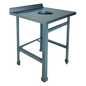 600х600х850мм, Стол для сбора отходов без борта, столешница из нержавеющей стали марки AISI 304 толщиной 0,8мм. Каркас разборный из уголка 40х40 толщиной 2мм, покрытого порошковой краской серого цвета. Отверстие O180мм в центре. Регулируемые опоры. Стол поставляется в разобранном виде.
