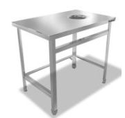 900х600х850мм, Стол для сбора отходов с объемным бортом высотой 70мм, столешница из нержавеющей стали марки AISI 430 толщиной 0,8мм. Каркас разборный из уголка 40х40 толщиной 2мм, покрытого порошковой краской серого цвета. Отверстие O180мм справа. Регулируемые опоры. Стол поставляется в разобранном виде.