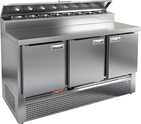 1485х700х850мм, PZE2-111/GN (1/6H) стол для пиццы охл.(+2+10), 3 двери, 1485х700х850мм, глуб.раб.пов. 486мм, ниж.распол.агрегата