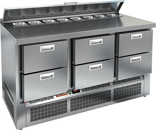 1485х700х850мм, SLE2-222GN (1/6) стол для салатов охл. (+2+10), 6 ящиков, 1485х700х850мм, ниж.распол.агрегата