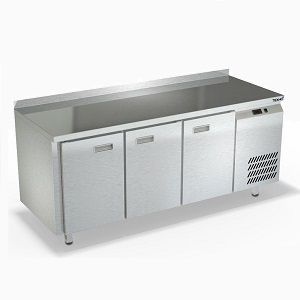 1835х700х850мм, Охлаждаемый стол с бортом высотой 50мм, боковое расположение агрегата. Столешница и корпус из нержавеющей стали марки AISI 430. Задняя панель и дно из оцинкованной стали. 3 двери. Температурный режим -2...+10, напряжение 220В, мощность 460Вт, внутренний объем стола 505л, полезный объем стола 366л. Компрессор (Испания). Хладон R-134. Петля доводчик (Польша). Полка решетка регулируемая по высоте с шагом - 45мм, гастронормированная, нагрузка 35кг. Нога опорная круглая, регулировка 50мм (Италия). Поставляется в собранном виде.