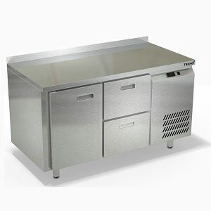 1390х600х850мм, Охлаждаемый стол с бортом высотой 50мм, боковое расположение агрегата. Столешница и корпус из нержавеющей стали марки AISI 430. Задняя панель и дно из оцинкованной стали. 1 дверь, 2 ящика гастронормированных, нагрузка по 35кг на ящик, направляющие с доводчиками (Австрия). Температурный режим -2...+10, напряжение 220В, мощность 220Вт, внутренний объем стола 290л, полезный объем стола 166л. Компрессор (Испания). Хладон R-134. Петля доводчик (Польша). Полка решетка регулируемая по высоте с шагом - 45мм, гастронормированная, нагрузка 35кг. Нога опорная круглая, регулировка 50мм (Италия). Поставляется в собранном виде.