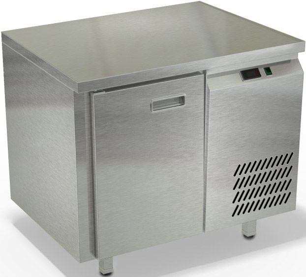 900х700х850мм, Охлаждаемый стол без борта, боковое расположение агрегата. Столешница и корпус из нержавеющей стали марки AISI 430. Задняя панель и дно из оцинкованной стали. 1 дверь. Температурный режим -2...+10, напряжение 220В, мощность 150Вт, внутренний объем стола 150л, полезный объем стола 122л. Компрессор (Испания). Хладон R-134. Петля доводчик (Польша). Полка решетка регулируемая по высоте с шагом - 45мм, гастронормированная, нагрузка 35кг. Нога опорная круглая, регулировка 50мм (Италия). Поставляется в собранном виде.