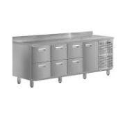 спецзаказ. 895х800х950 мм, спец борт сбоку, агрегат слева, 115 кг, 0,25 кВт, 220 В, от -2 до +8С, энергетический класс В, нерж сталь AISI 304, толщина изоляции 60 мм, со столешницей и бортом, глухая дверь, R290, в комплекте: 4 пары направляющих EN600x400 мм, с агрегатом