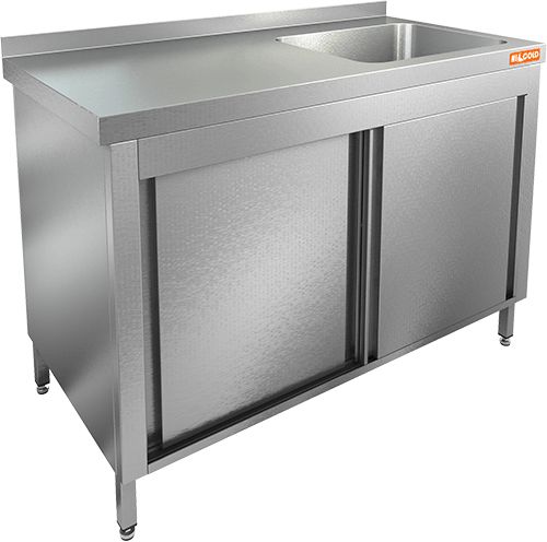 1700х700х850мм, НСЗК1М-17/7БП стол с ванной моеч. 1 секц. (500х500х300) справа, закрыт.,двери-купе