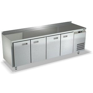 2280х700х850мм, Морозильный стол с бортом высотой 50мм, боковое расположение агрегата. Столешница и корпус из нержавеющей стали марки AISI 430. Задняя панель и дно из оцинкованной стали. 4 двери. Температурный режим -10...-18, напряжение 220В, мощность 480Вт, внутренний объем стола 660л, полезный объем стола 488л. Компрессор (Испания). Хладон R404. Петля доводчик (Польша). Полка решетка регулируемая по высоте с шагом - 45мм, гастронормированная, нагрузка 35кг. Нога опорная круглая, регулировка 50мм (Италия). Поставляется в собранном виде.