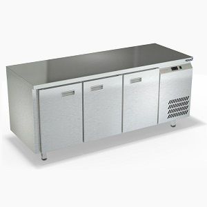 1835х600х850мм, Морозильный стол без борта, боковое расположение агрегата. Столешница и корпус из нержавеющей стали марки AISI 430. Задняя панель и дно из оцинкованной стали. 3 двери. Температурный режим -10...-18, напряжение 220В, мощность 460Вт, внутренний объем стола 435л, полезный объем стола 333л. Компрессор (Испания). Хладон R404. Петля доводчик (Польша). Полка решетка регулируемая по высоте с шагом - 45мм, гастронормированная, нагрузка 35кг. Нога опорная круглая, регулировка 50мм (Италия). Поставляется в собранном виде.