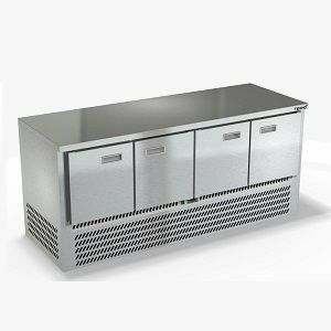1970х700х850мм, Морозильный стол без борта, нижнее расположение агрегата. Столешница и корпус из нержавеющей стали марки AISI 430. Задняя панель и дно из оцинкованной стали. 4 двери. Температурный режим -10...-18, напряжение 220В, мощность 460Вт, внутренний объем стола 460л, полезный объем стола 280л. Компрессор (Испания). Хладон R404. Петля доводчик (Польша). Полка решетка регулируемая по высоте с шагом - 45мм, гастронормированная, нагрузка 35кг. Нога опорная, регулировка 25мм. Поставляется в собранном виде.