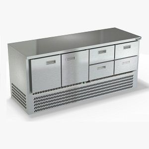 1970х700х850мм, Морозильный стол без борта, нижнее расположение агрегата. Столешница и корпус из нержавеющей стали марки AISI 430. Задняя панель и дно из оцинкованной стали. 2 двери, 4 ящика гастронормированных нагрузка по 35кг, направляющие с доводчиками (Австрия). Температурный режим -10...-18, напряжение 220В, мощность 460Вт, внутренний объем стола 460л, полезный объем стола 218л. Компрессор (Испания). Хладон R404. Петля доводчик (Польша). Полка решетка регулируемая по высоте с шагом - 45мм, гастронормированная, нагрузка 35кг. Нога опорная, регулировка 25мм. Поставляется в собранном виде.