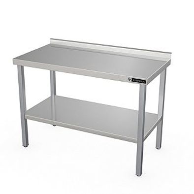 1500х700х870мм, нагрузка на столешницу 158кг, 1 борт, столешница нерж. сталь AISI304 0,8мм, подложка столешницы ДСП 16мм, ножки нержавеющая сталь AISI 201, зеркальная, 1,5мм, профиль ножек квадратная труба 40х40мм. Сплошная полка из нержавеющей стали AISI304. Регулируемые ножки 20мм. Вес 42,4кг. Для усиления прочности снизу полки установлен швеллер. Изделие разборное и поставляется в удобной упаковке, что облегчает транспортировку и хранение.