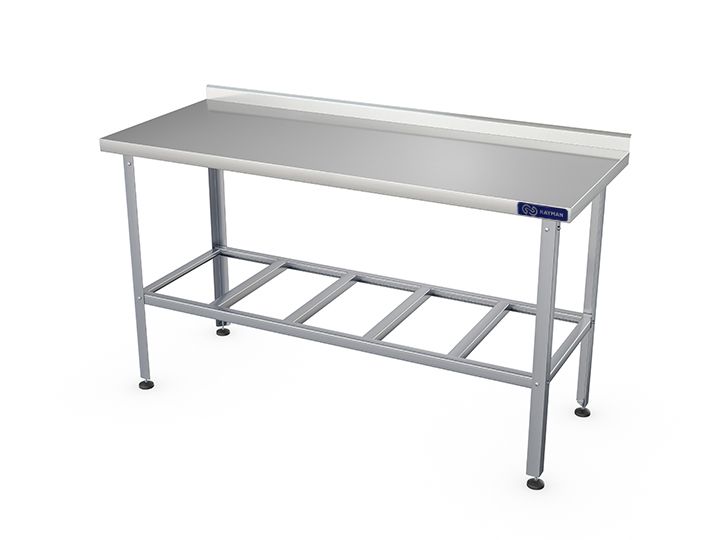 950х700х870мм, нагрузка на столешницу 100кг, 1 борт, столешница нерж. сталь AISI430 0,8мм, подложка столешницы ДСП 16мм, каркас нерж. сталь AISI430, уголок 40х40мм. Полка-решетка из нерж. сталь AISI430. Регулируемые ножки 20мм. Вес 16,8кг. Столешница стола изготовлена из легированной стали. Она укреплена с внутренней стороны листом древесно-стружечной плиты, что увеличивает прочность и исключает прогиб столешницы. Стойки стола выполнены в виде уголка. Стол имеет полку-решётку. Ножки имеют пластиковую опорную часть и регулируются по высоте. Изделие разборное и поставляется в удобной упаковке, что облегчает транспортировку и хранение.
