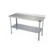 1000х600х870мм, нагрузка на столешницу 90кг, 1 борт, столешница нерж. сталь AISI430 0,8мм, подложка столешницы ДСП 16мм, каркас нерж. сталь AISI430, уголок 40х40мм. Полка-решетка из нерж. сталь AISI430. Регулируемые ножки 20мм. Вес 14,8кг. Столешница стола изготовлена из легированной стали. Она укреплена с внутренней стороны листом древесно-стружечной плиты, что увеличивает прочность и исключает прогиб столешницы. Стойки стола выполнены в виде уголка. Стол имеет полку-решётку. Ножки имеют пластиковую опорную часть и регулируются по высоте. Изделие разборное и поставляется в удобной упаковке, что облегчает транспортировку и хранение.