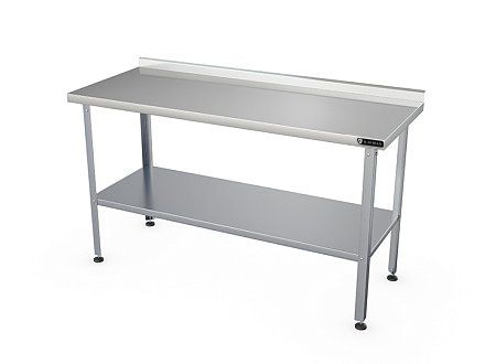 1000х700х870мм, нагрузка на столешницу 105кг, 1 борт, столешница нерж. сталь AISI430 0,8мм, подложка столешницы ДСП 16мм, каркас оцинк. сталь 1,2мм, уголок 40х40мм. Полка сплошная. Регулируемые ножки 20мм. Вес 19,7кг. Столешница стола изготовлена из легированной стали. Она укреплена с внутренней стороны листом древесно-стружечной плиты, что увеличивает прочность и исключает прогиб столешницы. Стойки стола выполнены в виде уголка. Стол имеет сплошную полку. Ножки имеют пластиковую опорную часть и регулируются по высоте. Изделие разборное и поставляется в удобной упаковке, что облегчает транспортировку и хранение.
