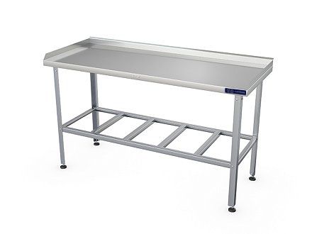 1400х800х870мм, нагрузка на столешницу 168кг, 3 борта, высота борта 50мм, столешница нерж. сталь AISI430 0,8мм, подложка столешницы ДСП 16мм. Каркас оцинкованная сталь 1,2мм, уголок 40х40мм. Полка -решетка из оцинкованной стали. Регулируемые ножки 20мм. Вес 29,3кг. Наличие борта с трех сторон позволяет работать с мукой, изделиями из теста,-А также для выполнять обвалку мясных и рыбных блюд, исключая попадание остатков обрабатываемой продукции на пол, что значительно упрощает уборку помещения. Изделие разборное и поставляется в удобной упаковке, что облегчает транспортировку и хранение.