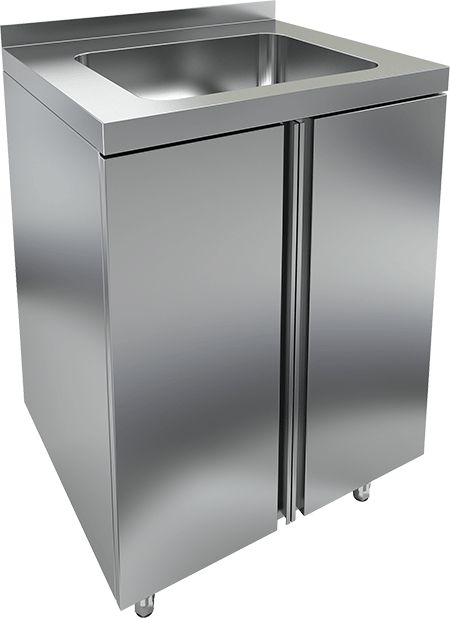 600х700х1000мм, НБМСЗМВ-6/7Б модуль барный, высокий - стол закрыт. с бортом, с мойкой (400х400х250), 600х700х850мм