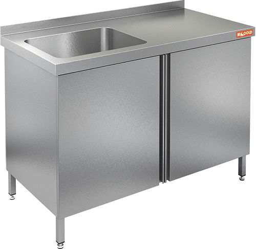 1100х600х850мм, НСЗ1М-11/6БЛ стол с ванной моеч. 1 секц. (500х400х250) слева, закрыт., распаш двери