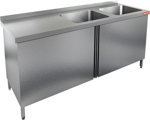 1500х600х850мм, НСЗ2М-15/6БП стол с ванной моеч. 2 секц. (500х400х250) справа, закрыт., распаш двери