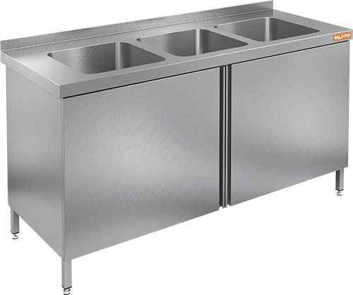 1800х600х850мм, НСЗ3М-18/6Б стол с ванной моеч. 3 секц. (500х400х250), закрыт., распаш двери