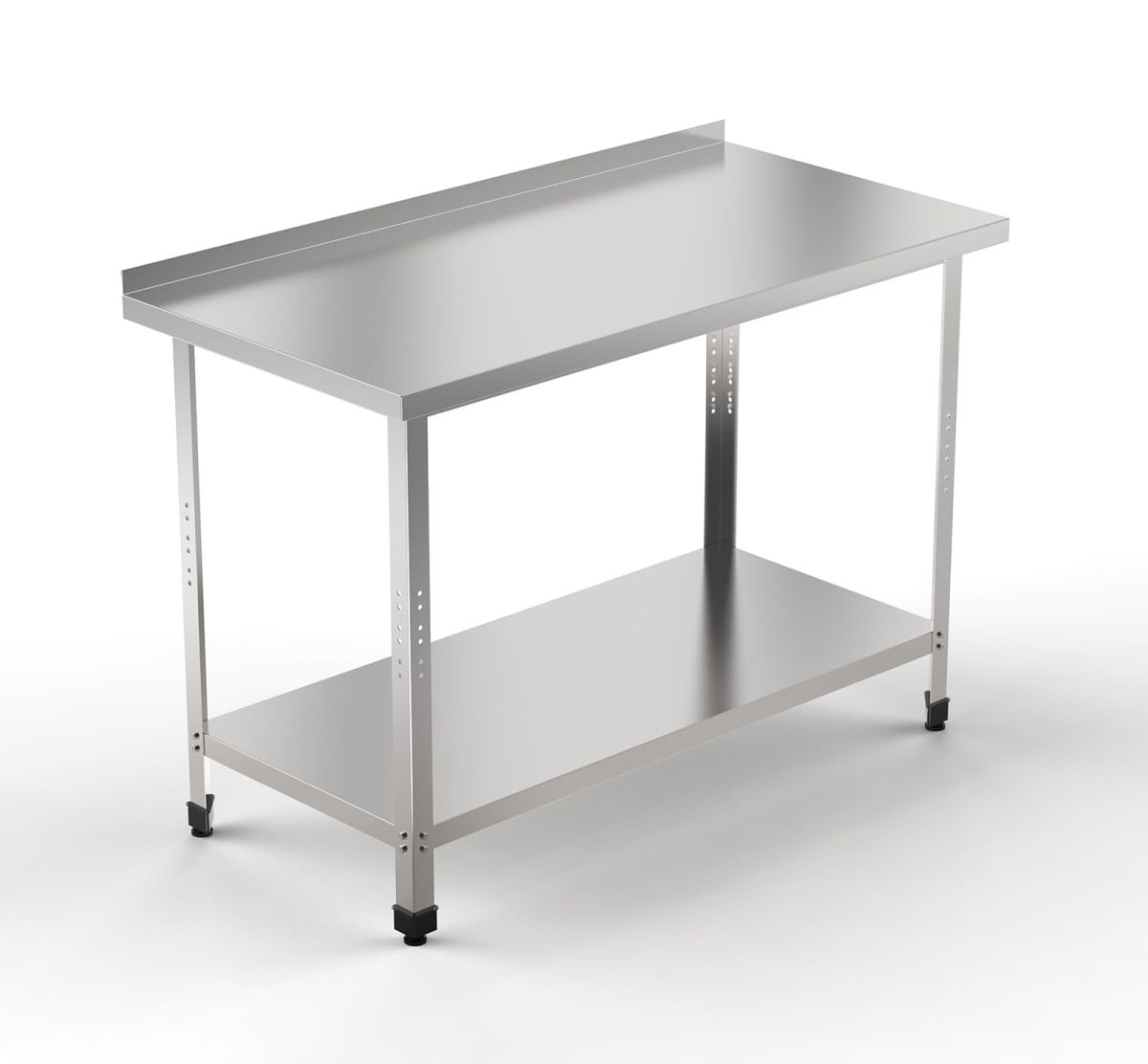 1200х600х850мм, Стол производственный серия Стандарт+, подложка ЛДСП 16 мм, столешница: нерж. сталь марки AISI 430, толщина 0,8 мм; каркас разборный, Нержавеющий уголок 1,5 мм, сплошная полка, борт