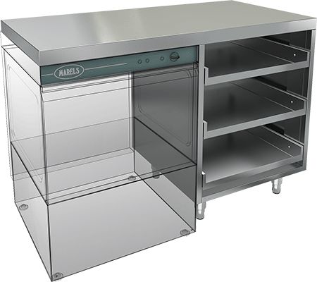 1200х500х850мм, НБМКБКП-12/5Л модуль барный для корзин с бокалами и крылом под посудомойку, слева, 1200х500х850мм