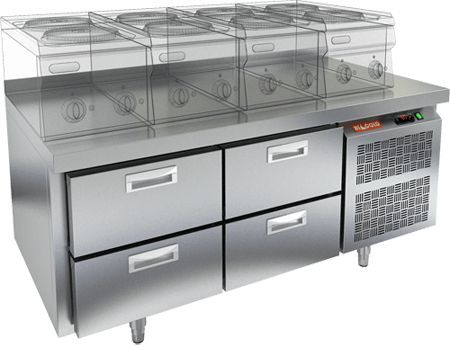 1390х600х675мм, SN 22/BT LT О стол охл. под тепловое оборуд. (-10-18), островн., 4 ящика, 1390х600х675мм