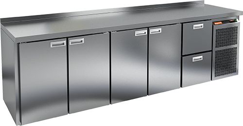 2840х700х850мм, GN 11112 BR2 TN стол охл. (-2+10), 4 двери, 2 ящика, увелич. объёма, на низ. ножках, 2840х700х850мм