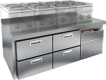 1390х600x610мм, SN 22/TN LT Sh стол охл. под тепловое оборуд. (-2+10), 4 ящика, на низких ножках, 1390х600x610мм