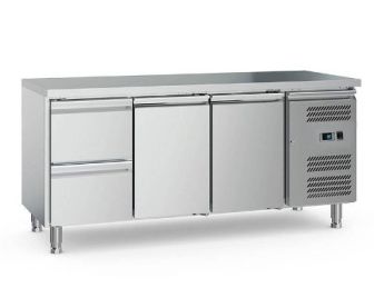 1795x700x850мм, 147 кг, 0,23кВт, 230В, 417л, температурный режим -2/+8, динамическое охлаждение, 2 ящика, столешница из нержавеющей стали, боковое расположение холодильного агрегата, без борта