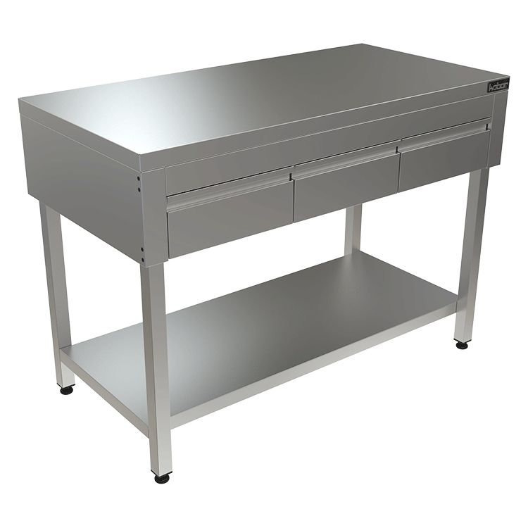 1200х700х870мм, Стол с выдвижными ящиками (столешница – нерж. сталь aisi 430, выдвижные ящики под столешницей, усиление ЛДСП, каркас нерж. труба 40х40, полка, разборный)
