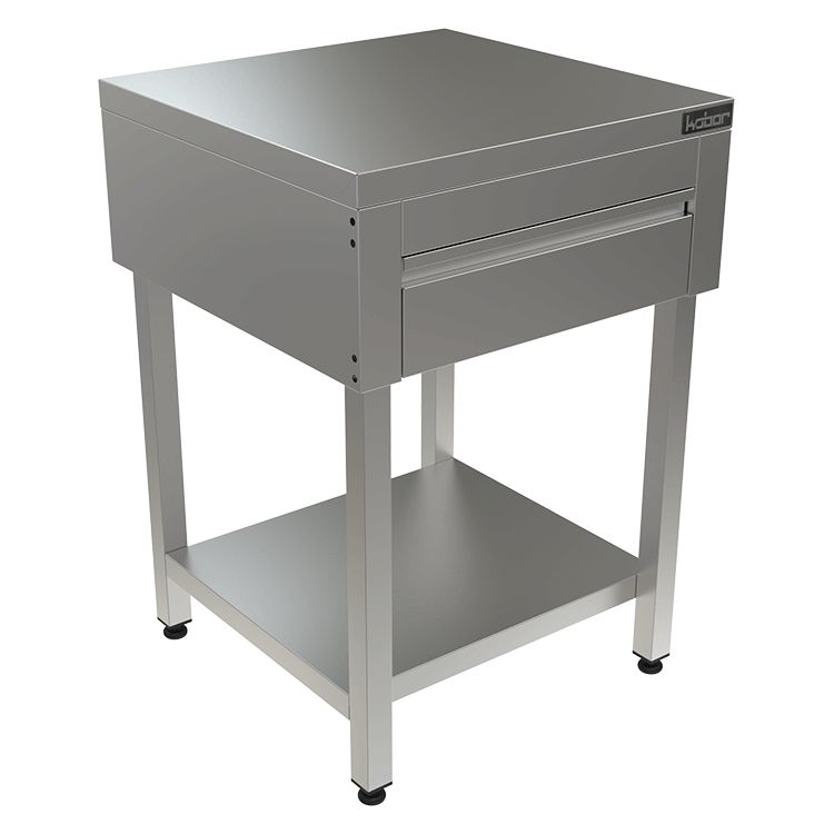 600х600х870мм, Стол с выдвижными ящиками (столешница – нерж. сталь aisi 430, выдвижные ящики под столешницей, усиление ЛДСП, каркас нерж. труба 40х40, полка, разборный)