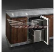 1100х700х850, каркас разборный, труба 40х40 из нержавеющей стали AISI 430 толщиной стенки 1,2 мм, обвязка, рабочая поверхность AISI 430, толщиной 0,8 мм, усиление ЛДСП 16 мм, 0,2V, м3
