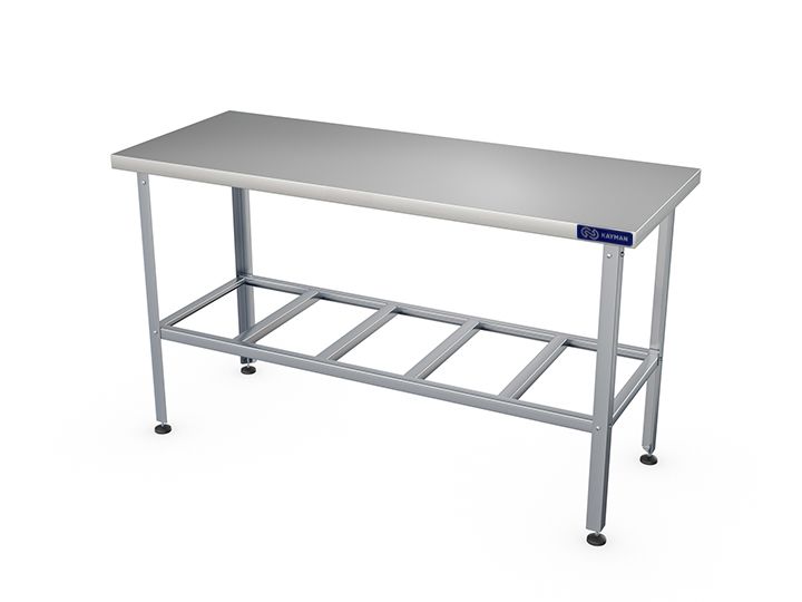 1200 х 600 х 870мм, нагрузка на столешницу 108кг, без борта, столешница нерж. сталь AISI430 0,8мм, подложка столешницы ДСП 16мм. Каркас нерж. сталь AISI430 толщина металла 1,5мм, уголок 40х40мм. Полка - решетка из нерж. сталь AISI430. Отсутствие борта позволяет располагать стол в любом месте помещения и осуществлять работу на нем с любой стороны и может быть установлен в центре кухни. Регулируемые ножки 20мм. Вес 17кг. Изделие разборное и поставляется в удобной упаковке.