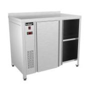 1200х600х850мм, Стол-тумба с бортом высотой 70мм. Столешница из нержавеющей стали марки AISI 304 толщиной 0,8мм, ЛДСП толщиной 32 мм. Корпус, две двери-купе из нержавеющей стали марки AISI 304 толщиной 0,8мм и четыре выдвижных ящика расположенных справа изготовлены из нержавеющей стали марки AISI 430 толщиной 0,8мм. Полка из нержавеющей стали марки AISI 430 толщиной 0,8мм. Задняя стенка из нержавеющей стали марки AISI 430 толщиной 0,8мм. Регулируемые опоры. Стол поставляется в собранном виде.