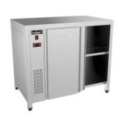 1100х800х850мм, Стол-тумба без борта. Столешница из нержавеющей стали марки AISI 430 толщиной 0,8мм, ЛДСП толщиной 32 мм. Корпус и две двери-купе из нержавеющей стали марки AISI 430 толщиной 0,8мм. Полка из нержавеющей стали марки AISI 430 толщиной 0,8мм. Задняя стенка из оцинкованной стали толщиной 0,55мм. Регулируемые опоры. Стол поставляется в собранном виде.